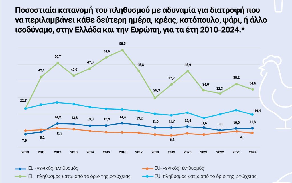 Το 2024, το 34,6% του πληθυσμού που ζει κάτω από το όριο της φτώχειας βρέθηκε σε κατάσταση επισιτιστικής ανασφάλειας.